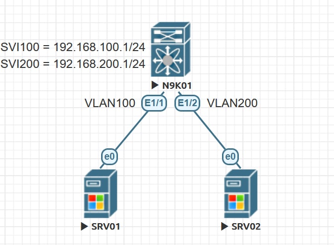 In this lab, we are going to configure the IVR between VLAN 100 and VLAN 200.